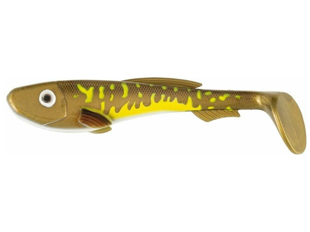 Velký, lopatkový ocas této gumové nástrahy poskytuje návnadě stálý, ale přesto silný kolíbavý pohyb. Návnada se kolíbá celou svou délkou a to je na dravé ryby velmi efektivní.